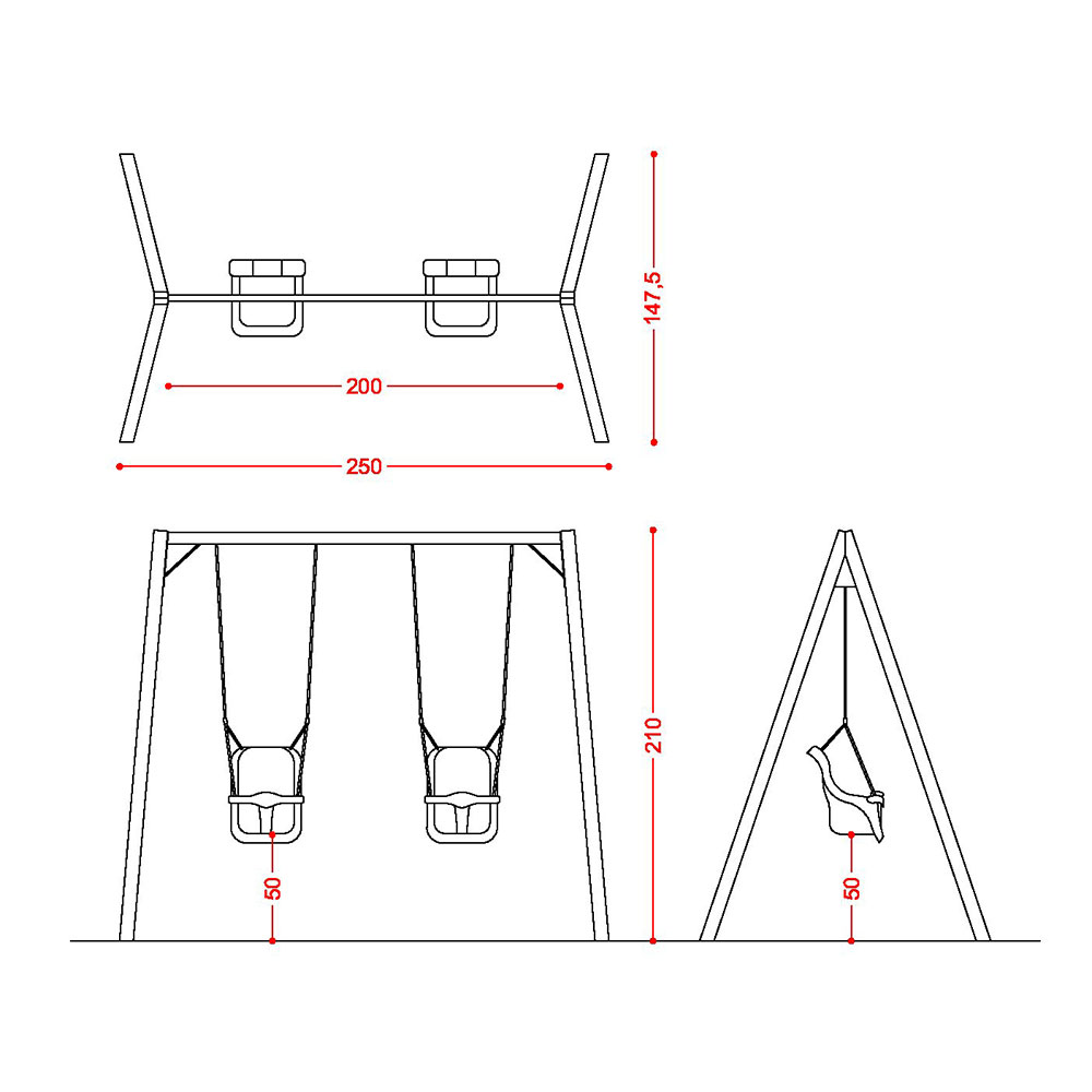- N.2 sediolini a gabbia, con corde regolabili e elementi di aggancio alla struttura;