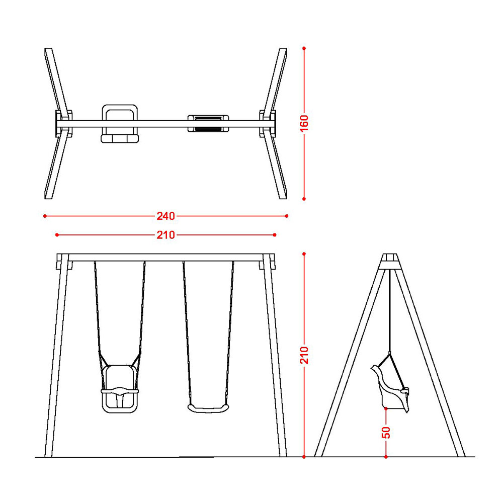 - N.1 sediolino libero e N.1 sediolino a gabbia, con corde regolabili e elementi di aggancio alla struttura;