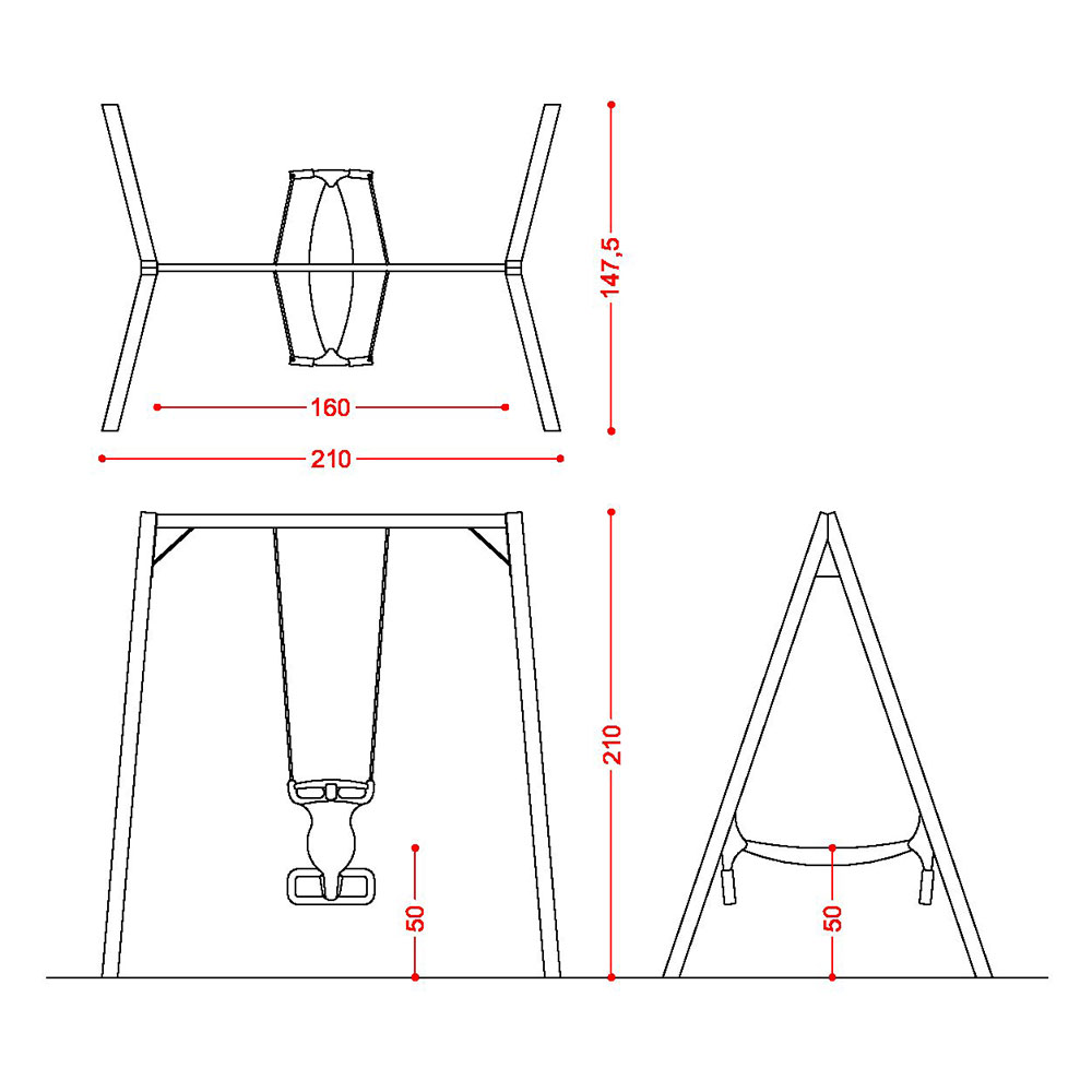 • N. 1 sediolino contrapposto per n.2 bambini, con corde regolabili e elementi di aggancio alla struttura;