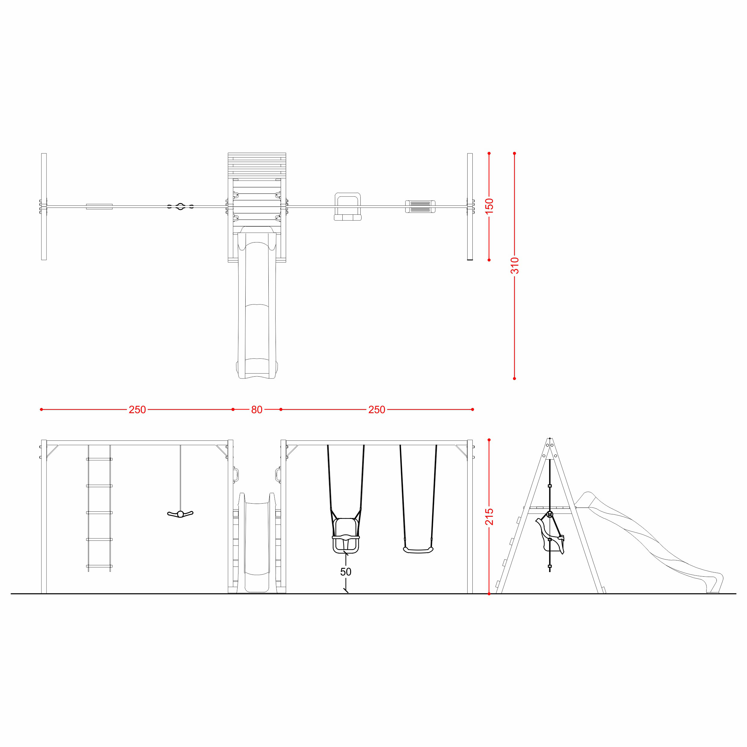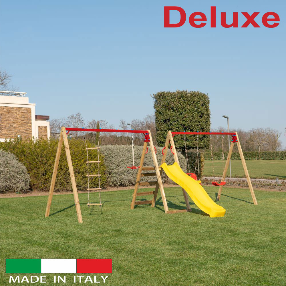 - N.1 altalena doppia con n.1 scaletta + n.1 ventolino;