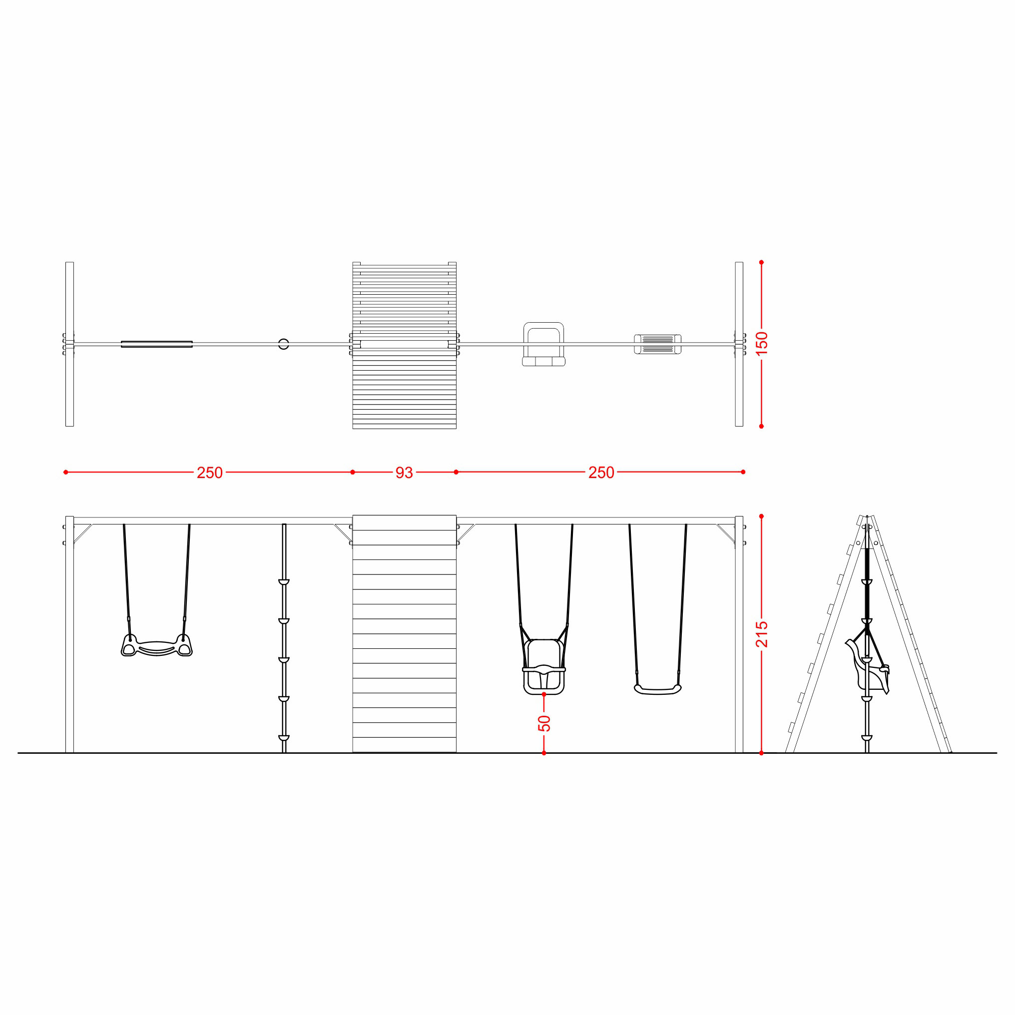 • N.1 altalena doppia con n.1 anelli a trapezio + n.1 fune di arrampicata