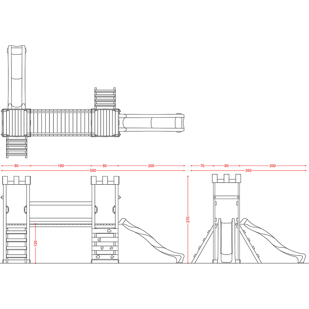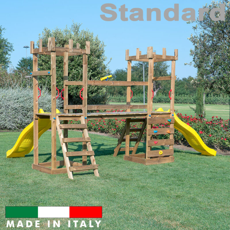 - N.2 scale di risalita composto da 4 elementi sez. mm 45×90, in pino nordico impregnato in autoclave secondo le norme DIN 68800 e 5 appigli;