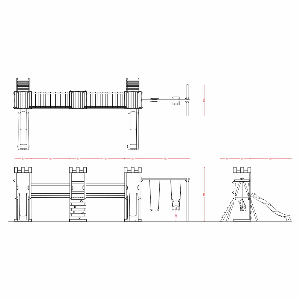 - N.1 altalena con trave in legno di pino nordico impregnato in autoclave secondo le norme DIN 68800 completa di n.1 sedile libero + n.1 sedile a gabbia;