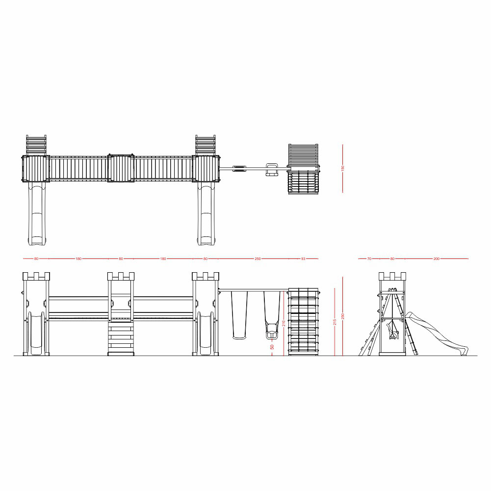 - N.1 altalena con trave in legno di pino nordico impregnato in autoclave secondo le norme DIN 68800 completa di n.1 sedile libero + n.1 sedile a gabbia;