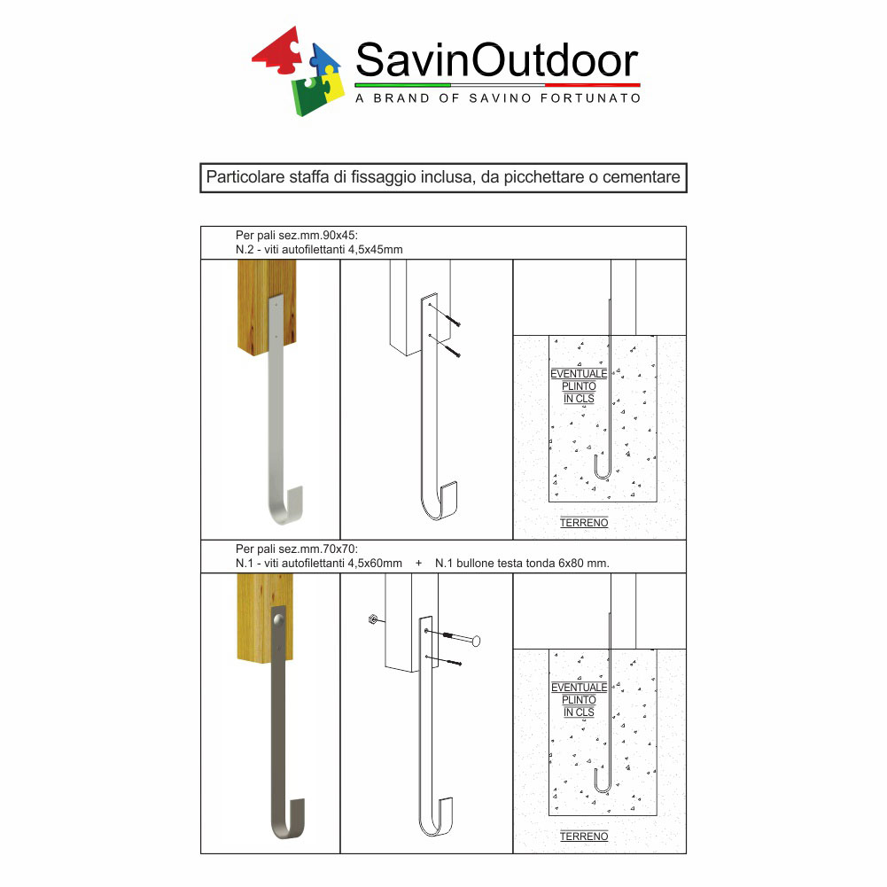 - N.12 pali montanti, sez. mm.45×90, in pino nordico impregnato in autoclave secondo le norme DIN 68800;