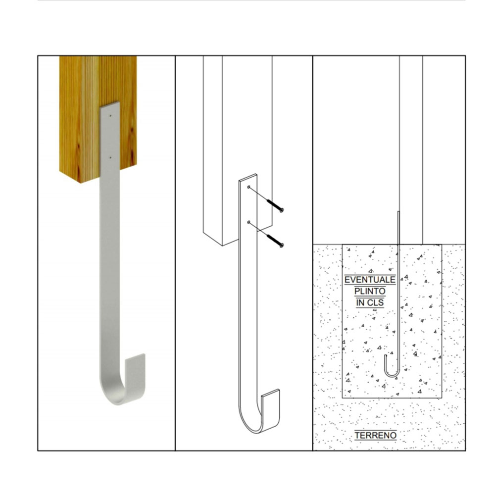 • N.6 pali montanti, sez. 45×90 mm, in pino nordico impregnato in autoclave secondo le norme DIN 68800;