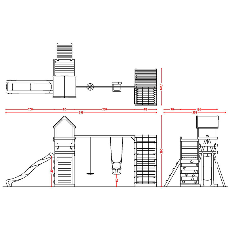 Torre doppia con tetto arrampicata altalena con due sedili liberi e sartia deluxe