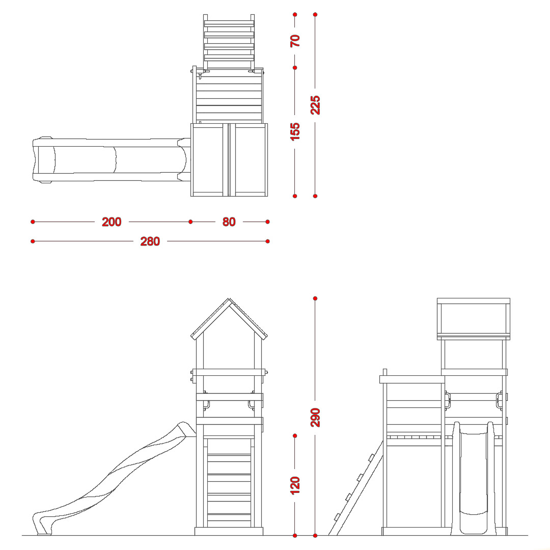 - N.1 scivolo in polietilene H 125cm lunghezza 220 cm ;