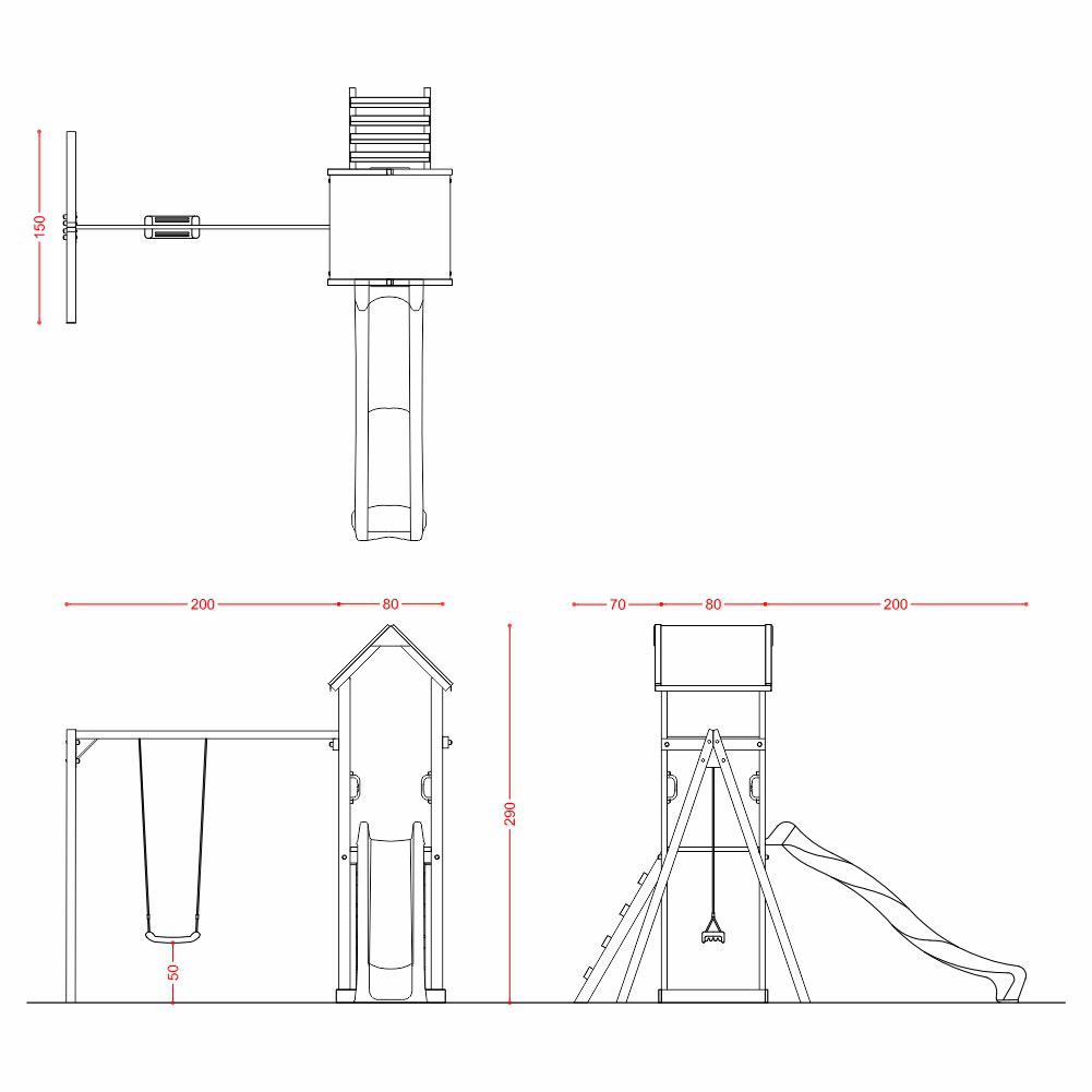 Torre Singola Deluxe con tetto + altalena con n.1 sedile libero