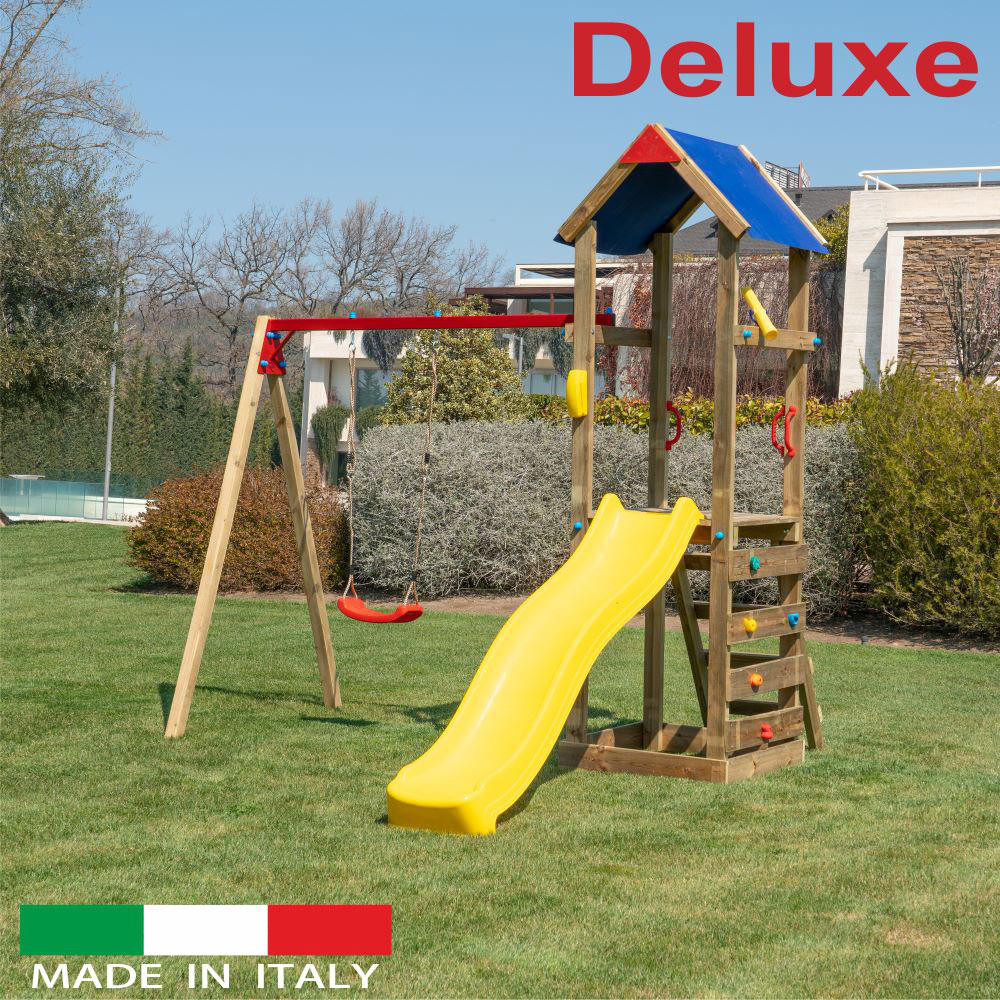 - N.1 arrampicata in pino nordico impregnato in autoclave secondo le norme DIN 68800 con appigli climbing;