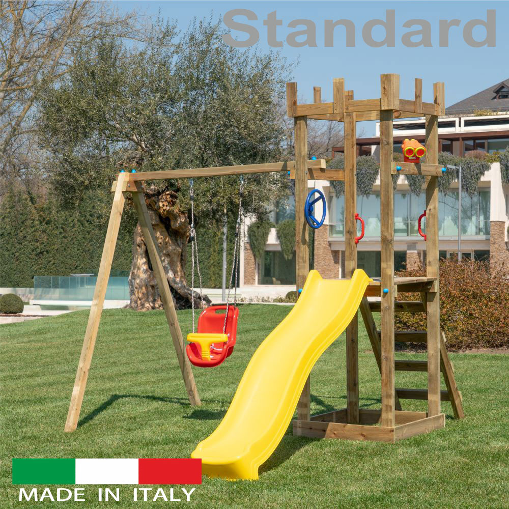 - N.1 altalena con trave in legno completa di n.1 sedile a gabbia;