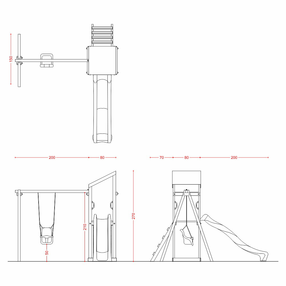 Torre Singola Standard con tetto + altalena con n.1 sedile a gabbia