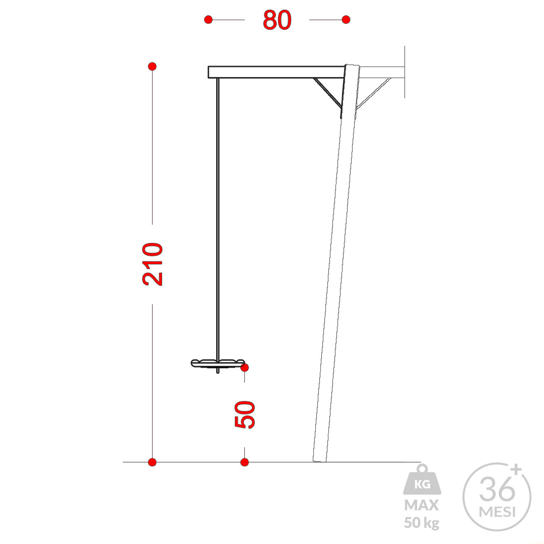 • N.1 trave di sostegno in acciaio verniciato con triangolo di collegamento ai pali montanti saldato alla trave;